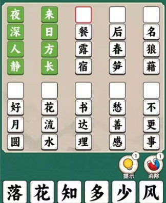 5、游戏采用填字答题模式,下方会列出备选汉字供你挑选。