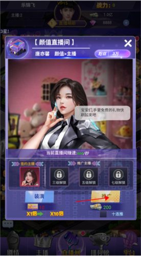 6、在剧情模式中,可访问其他主播的直播间,通过互动与打赏提升好感度,解锁更多故事与奖励。