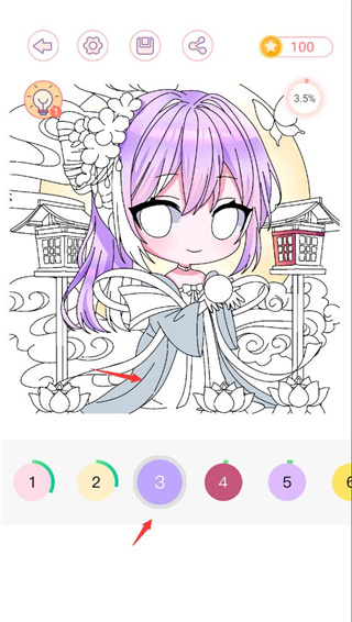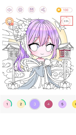 7、游戏中可以随时查看当前这幅画的涂色完成进度百分比。