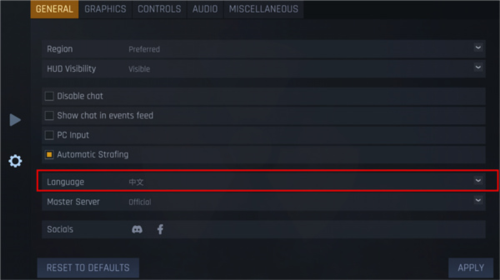 2、在语言列表中选择中文,然后点击“APPLY”按钮进行确认。