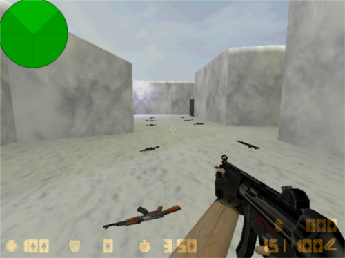 4、死亡竞赛:经典团队枪战模式,反恐精英与恐怖分子展开对抗;玩家阵亡后立即重生,通过击败对手赚取金钱,购买更强武器。