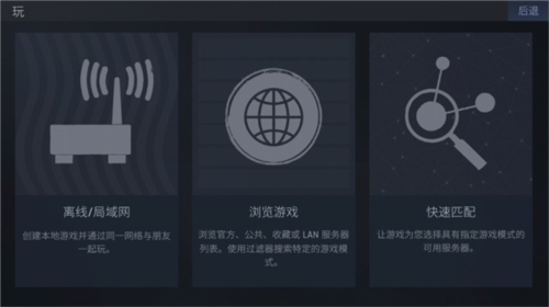 2、系统提供三个服务器选项,均支持联机;第一个选项允许玩家自己创建房间并邀请伙伴加入;第二个选项则是加入他人已创建的公开房间;玩家可根据需求选择。