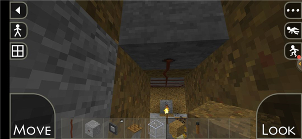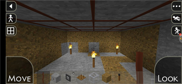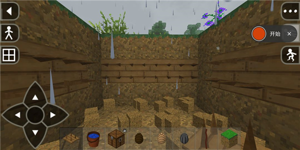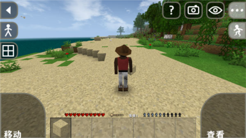 5、通过虚拟摇杆控制角色移动,进行建造、采集等互动操作。