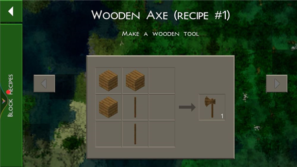 3、在工作台内,参照合成配方制作木斧等工具以提高效率。