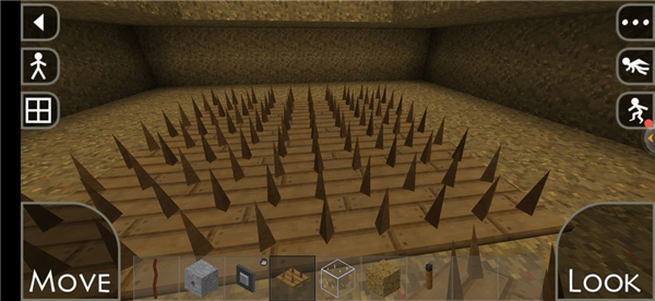 7、陷阱建造完成;可将其设于基地附近,用肉类吸引狼群进入,待其转变为狼人后启动机关,利用刺钉高效获取钻石。