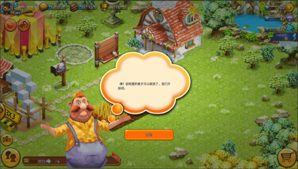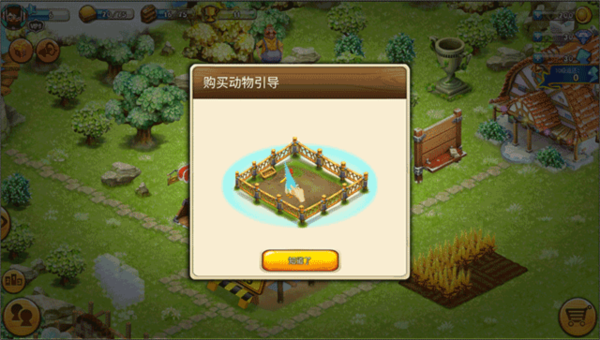 1、完成初期麦子收割后,需建造烤炉以加工粮食,点击界面右下角购物车图标;