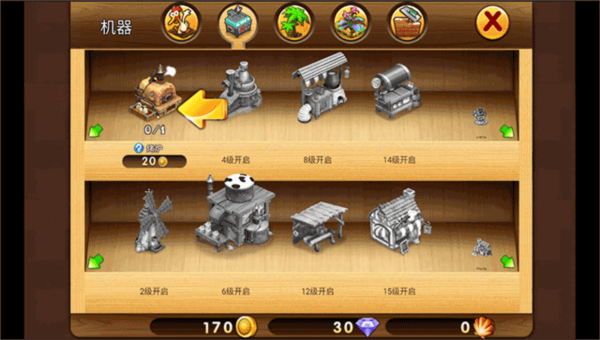 2、进入商城界面,选择第二类“机器”选项;