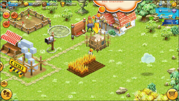 3、按照教程提示,学习收割麦子等基础操作;