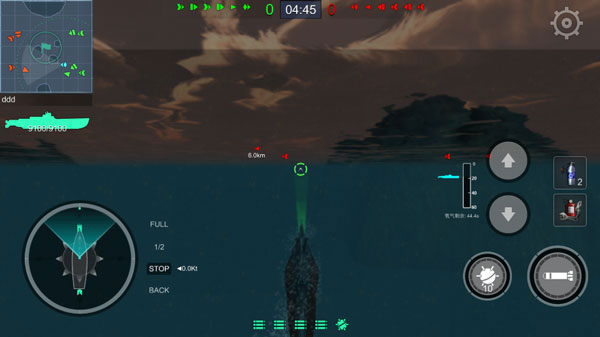 1、下潜与上浮:点击对应按钮,潜艇会下潜或上浮一个深度层级。