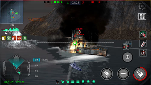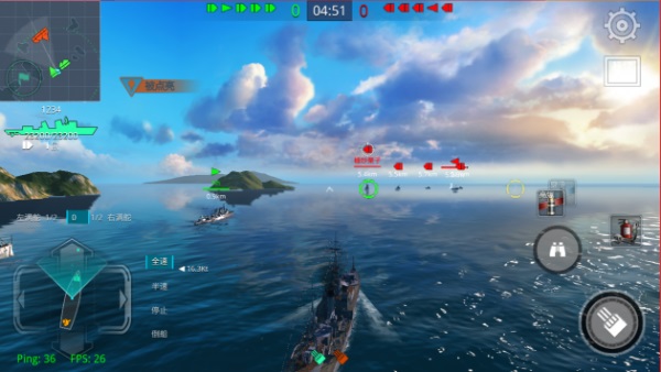 游戏内航行通过速度档位与方向键控制,破坏防空即摧毁敌方战舰的防空炮塔。玩家使用上下键在全速、半速、停船、倒船四档间切换,左右键调整航向。简化操作让玩家能更专注于索敌与交战,充分感受海战乐趣。