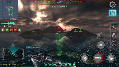 主炮是水面舰艇的默认武器;进入主炮模式后,屏幕会显示瞄准准星,系统会自动锁定射程内的敌方目标。