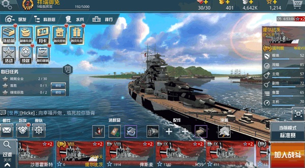 3、依据战舰的不同类型,玩家可以灵活编组战斗群,以应对多变的战场局势与各类对手。