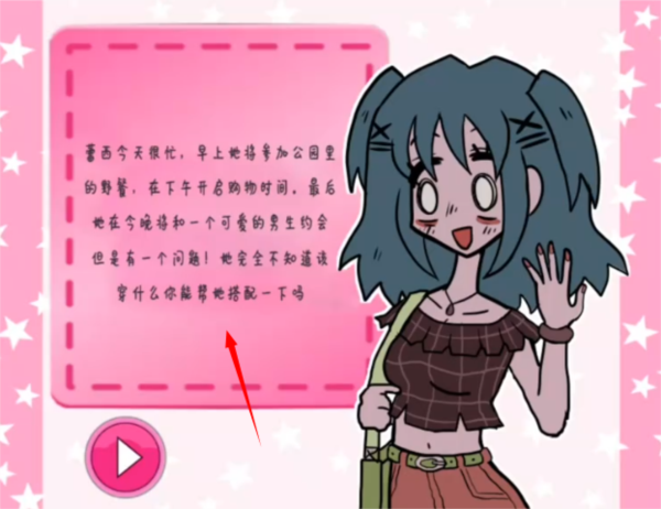 1、游戏开始后,依照提示信息为女主角选择合适的穿搭组合;