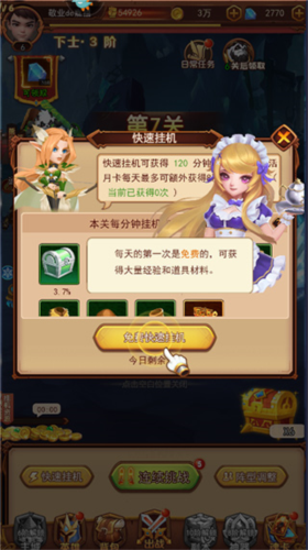2、每次进行推图时,建议尽力推进直至暂时无法通过为止;随后再进行快速战斗并领取挂机宝箱,这种操作能使资源收益达到较高水平。