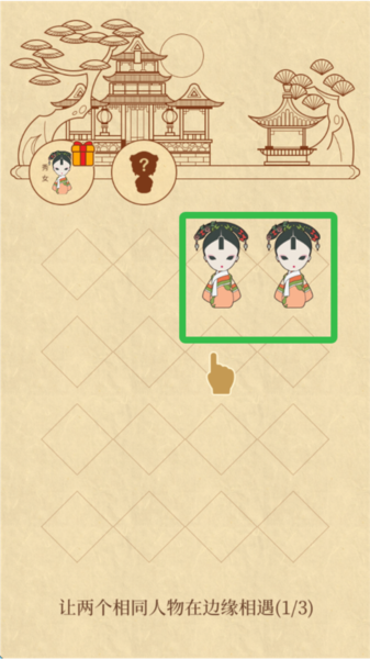 1、将两个相同的人物移动到一起即可消除。