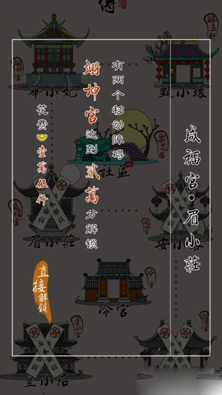 游戏把宫廷主题融入合成玩法,玩家通过点击或滑动屏幕,将相同等级的角色合并为更高阶的人物,体验从小秀女成长为皇后的历程。采用关卡推进模式,合成指定目标角色即可解锁新的宫殿场景,推动剧情展开。游戏中收录了上百位清宫人物,例如莞贵人、华妃与皇后等,每位都配有独特的萌系语音。玩家能在古雅的美术风格中,享受合成玩法带来的乐趣。