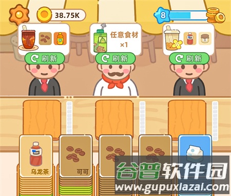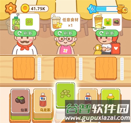 1、核心玩法围绕店铺经营展开,玩家需根据客户订单,放置对应的奶茶原料卡牌,集齐十张即可完成一杯奶茶的制作。