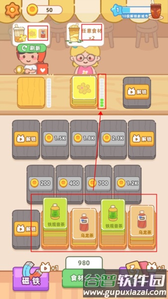 4、通过完成订单收集并解锁更多食材与饮品卡牌,逐步建设你理想中的奶茶店铺。