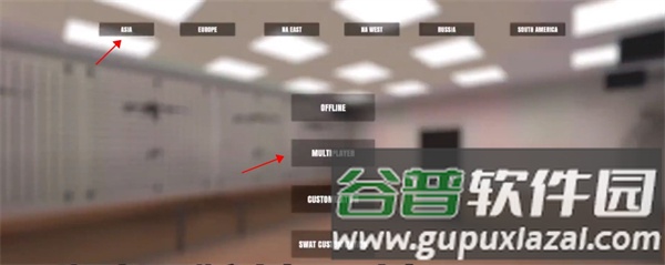 1、启动游戏后,选择亚洲区服,点击多人游戏选项;