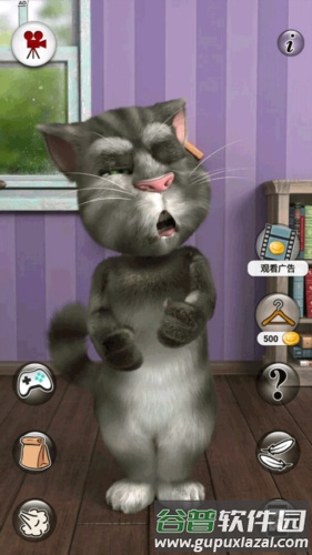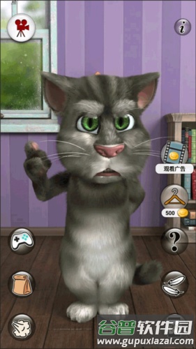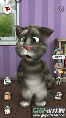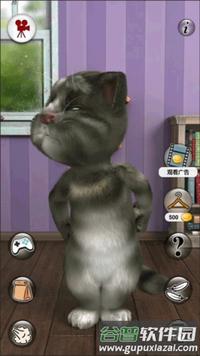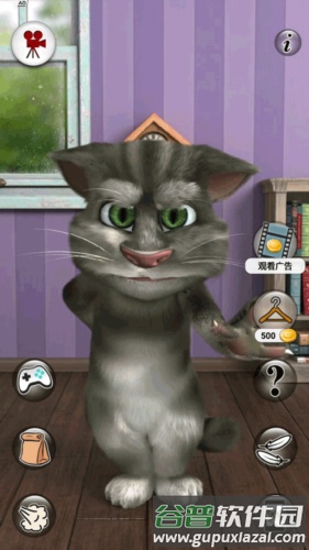 点击这个按键会带汤姆来到客厅,在这里你可以与它进行各种互动,也可以一起玩小游戏。