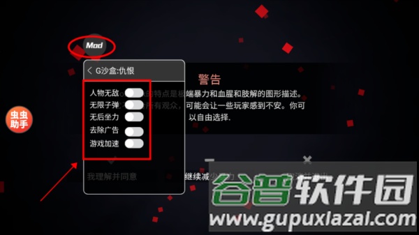2、完成认证后进入游戏,点击左侧MOD图标即可开启功能菜单,勾选所需选项;