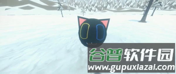 3、穿过柱子后,可以看到后面隐藏着一个造型怪异又可爱的小猫球。
