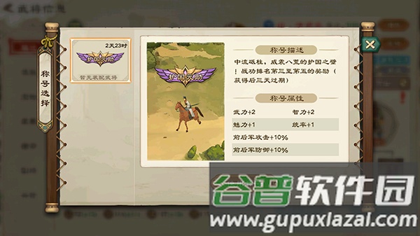 8、称号佩戴;通过活动获得的称号需及时给武将装备。请注意,称号在有效期内一旦装配便无法卸下,因此选择时需慎重考虑。