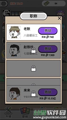 5、接着点击职称界面,向其他工人发起挑战,从而提升自己的职称等级;