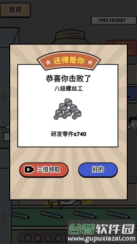 7、之后玩家需要凭借手速快速点击屏幕进行打螺丝对决,战胜对手后即可获得八级螺丝工职称,后续通过不断晋升来解锁更多游戏内容。