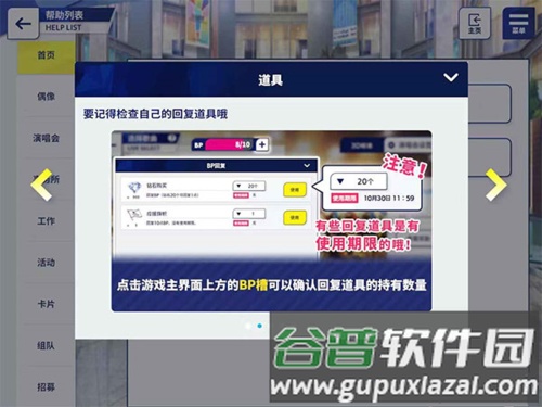 此外还能使用小喇叭与哨子道具;小喇叭每次可恢复十点BP,哨子每次恢复一点。哨子可通过购买应援月卡每日获取五个。