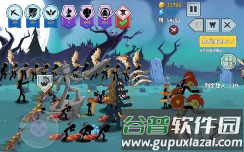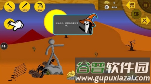 第四关矛兵关卡:四名矿工起步,全力培养剑士克制矛兵。升级选择:剑士武器与剑士头盔。