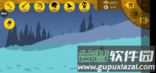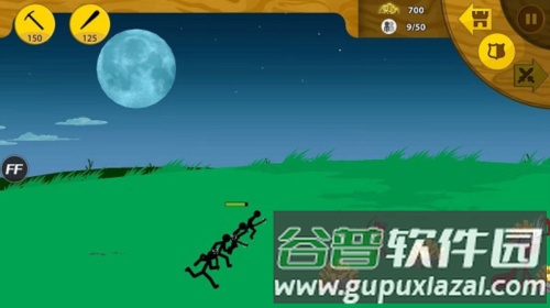 游戏属于对战塔防类型,首要任务是获取资源;点击左上角锄头图标召唤采矿火柴人,它们会搬运矿石换取金币用于招募战斗单位。