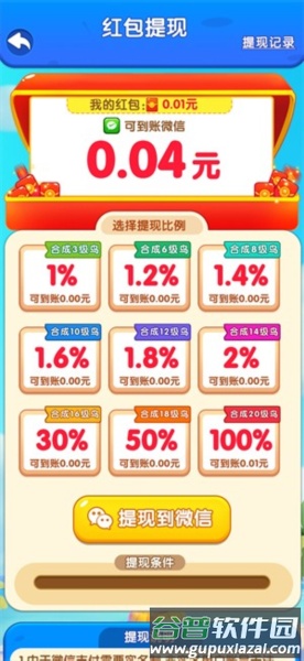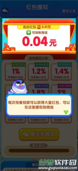 5、游戏初始的兑换比例为1%,合成出高等级小鸟后,兑换比例会相应提高。