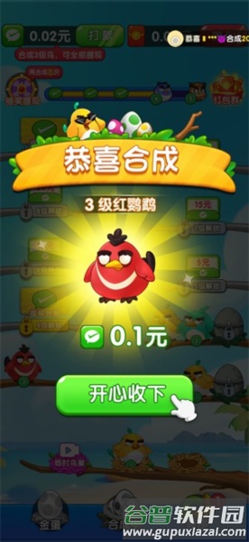 3、合成高等级小鸟能直接获得红包,小鸟等级不同,对应的红包金额也有差异,等级越高红包越大。