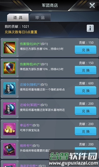 可使用军团贡献兑换各类道具,包括基础资源、军官培养材料、幸运币、改造工具及高级航母合同等;珍品商店每日0点、12点、18点刷新,可能刷出红色士兵;贡献值应合理规划使用,前期可考虑兑换统率书、迁城令或幸运币。