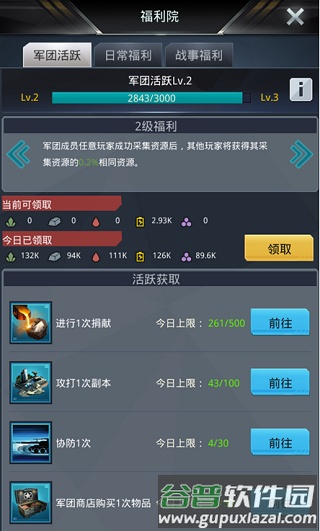 福利与军团活跃度挂钩,共分五级;成员可分享其他玩家采集资源的0.2%至1%;每日登录可领取科技点与技能书;提升活跃度需成员积极参与捐献、副本挑战、商店消费及协防。