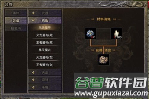 系统提供装备、技能书、玉佩、勋章及盾牌的合成功能。玩家通过日常活动积累材料,达到一定数量后即可合成更高级的装备或技能书。
