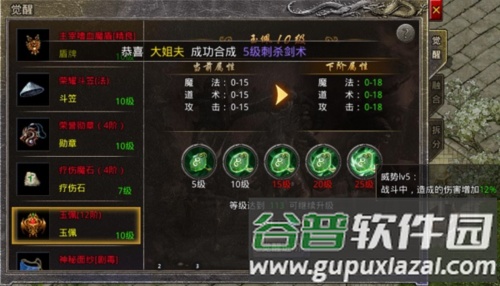 玉佩觉醒获得威势技能,增加战斗中造成的伤害。