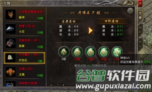 疗伤石觉醒获得神佑技能,提升药品回复效果。
