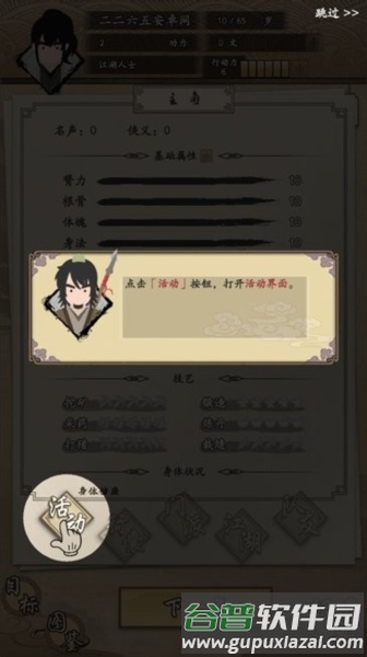5、行动力数值决定了每日可进行的活动数量,提升该数值能让你的江湖生涯更加高效。