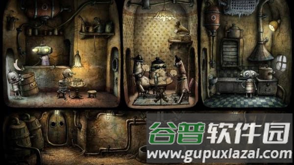 4、坠落电梯处的解法:与铁窗内机器人对话,协助其取下锅具;从橱柜取出玉米放在火上烘烤,爆米花被烟囱吸入后撞落外部铁棍;拾取铁棍交给窗内机器人;踩上锅具,用钩子打开上方冷气阀并取下冻结的软管;将锅放回火源,加热软化软管后,即可用其引接油料。