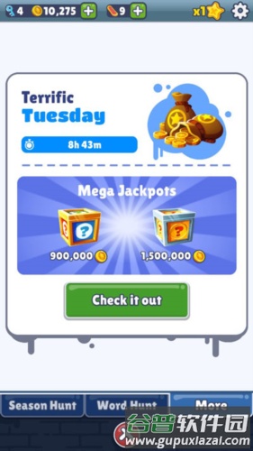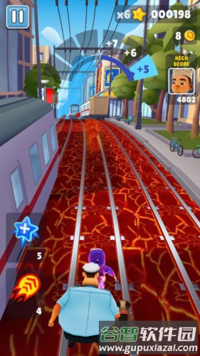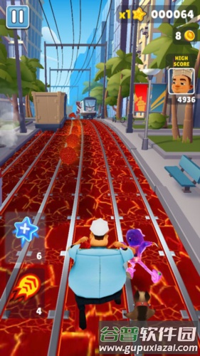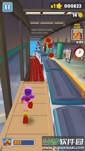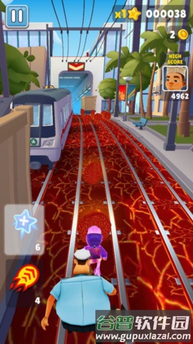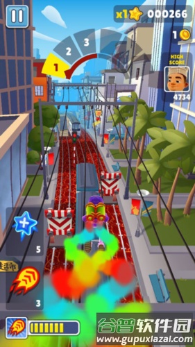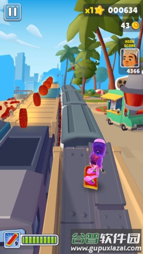 (2)飞行背包——激活后在有效时间内可空中飞行,期间不会撞上障碍物或火车,但仍可收集金币。