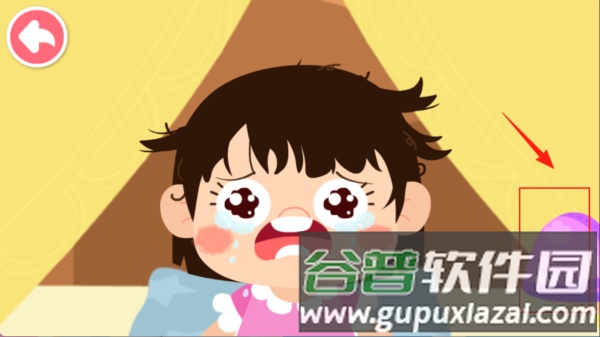 3、首先宝宝需要帮妹妹擦干净小脸蛋,点击右边的毛巾即可为妹妹洗脸。