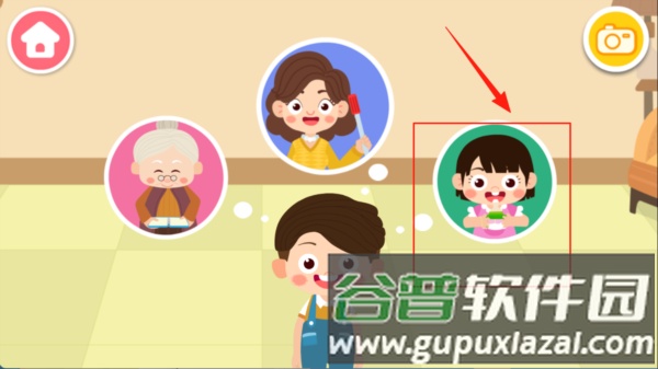 1、基础任务流程:选择一位家庭成员进入对应场景,按照提示完成一系列互动,例如帮妹妹完成洗脸、喂食、梳头等步骤,每个操作都有清晰引导;