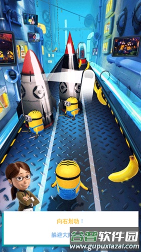 2、手指向右滑动可控制小黄人避开障碍。