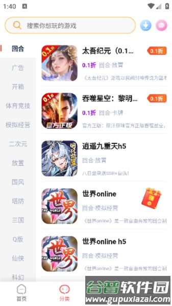 3、选择感兴趣的类别后,即可看到该类别下的大量游戏。
