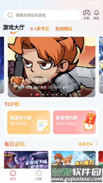 1、打开软件进入首页,可以看到许多游戏推荐。