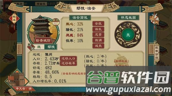 稳定:治下城邑叛乱、厌战与独立倾向过高会降低稳定;稳定度过低时国家叛乱风险大增。可通过安抚城邑、祭祀先祖、施行特定政策及设立储君提升稳定。