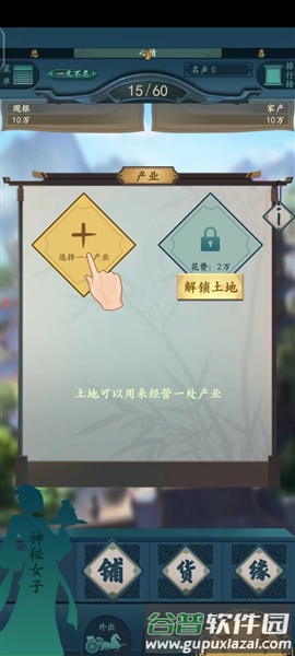6、通过积累货币,可以购置土地与各类物品;