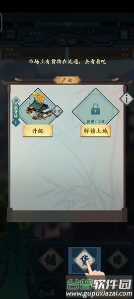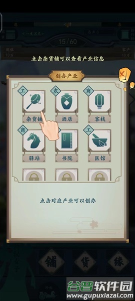 5、点击杂货铺并创办产业,此后每年可获得固定收入,有余钱时可前往市场进行商品交易;